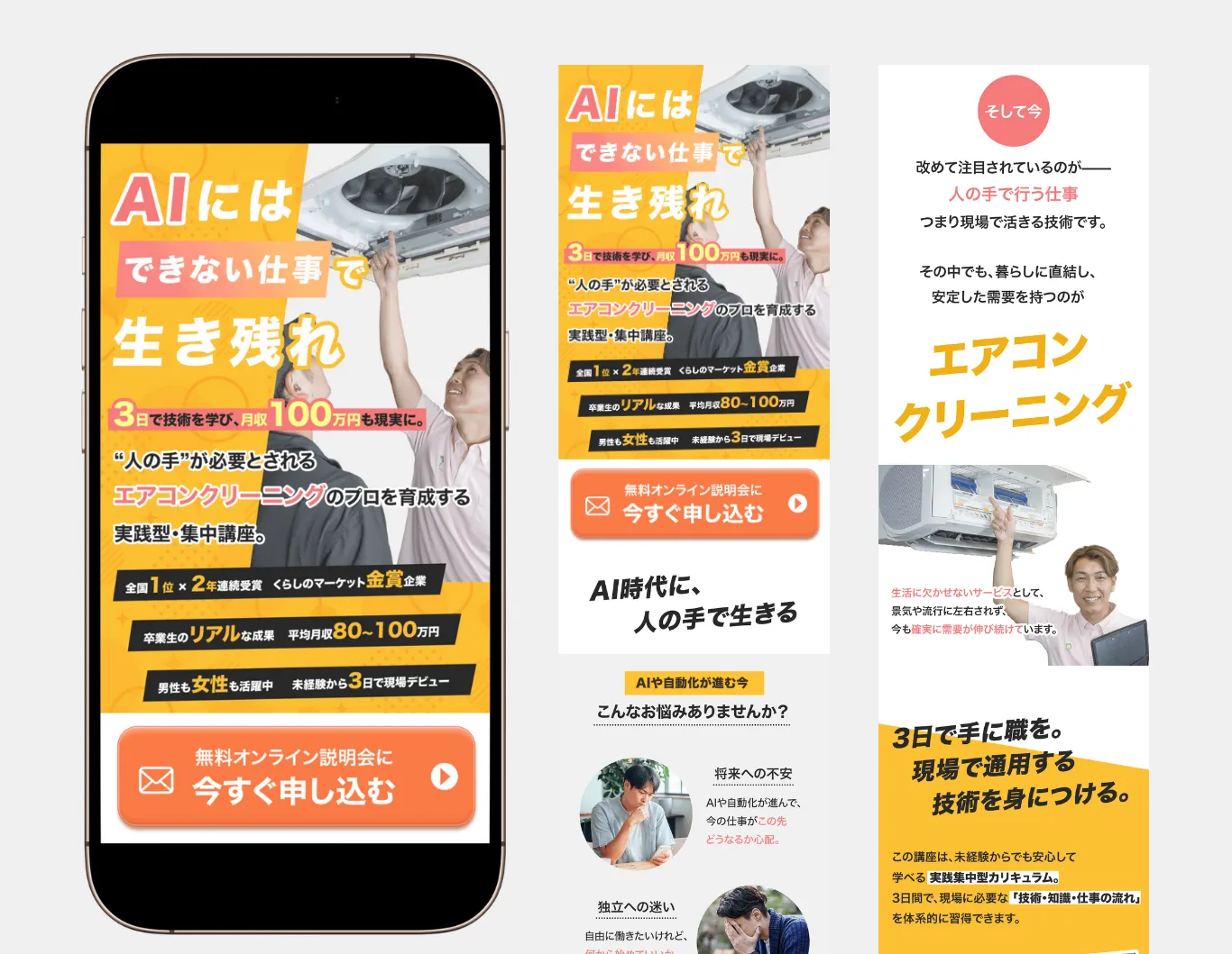 主にWordPressを使い、ご自身で更新できるWEBサイトやLPを制作します。ただ作るだけでなく、伝わる構成・導線設計までご提案。納品後は更新サポート・ヒートマップ解析を行い、最適なサイトへと導きます。